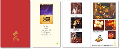 RESULT: From the day the Sultans Tent & Cafe Moroc opened everything worked together to create the visually rich new experience intended. Research & testing showed the sales tools proved to reflect that rich experience. The Sultans Tent & Cafe Moroc became a successful business.